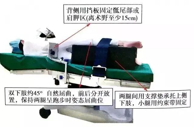 将患者仰卧于手术床上,确保头颈处于自然位置。可使用头环或头枕进行头颈支撑,以保持颈椎生理曲度。腹部手术时,双腿略微屈曲,支撑膝关节,以放松腹肌。